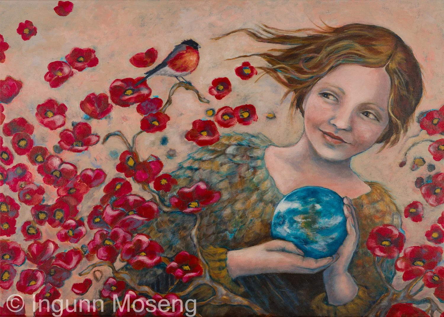 "Min valmuesøster", 50x50 cm acrylic and gold metal leaf on canvas. Original work sold to private collector in the USA. Prints available for purchase.