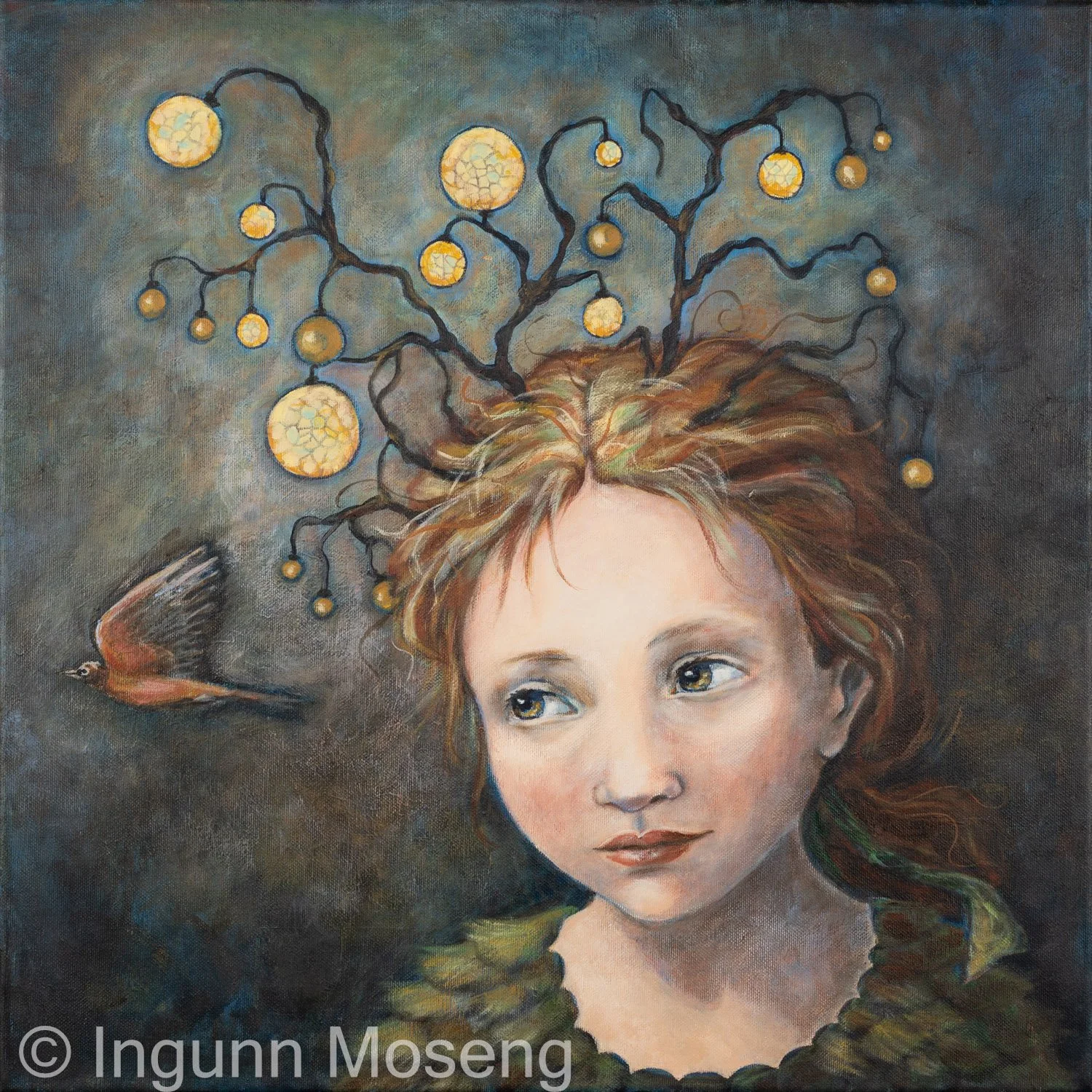 "Budbringere"/ "Messengers" 50x70 acrylic and gold metal leaf on canvas. Original work and prints available for purchase.