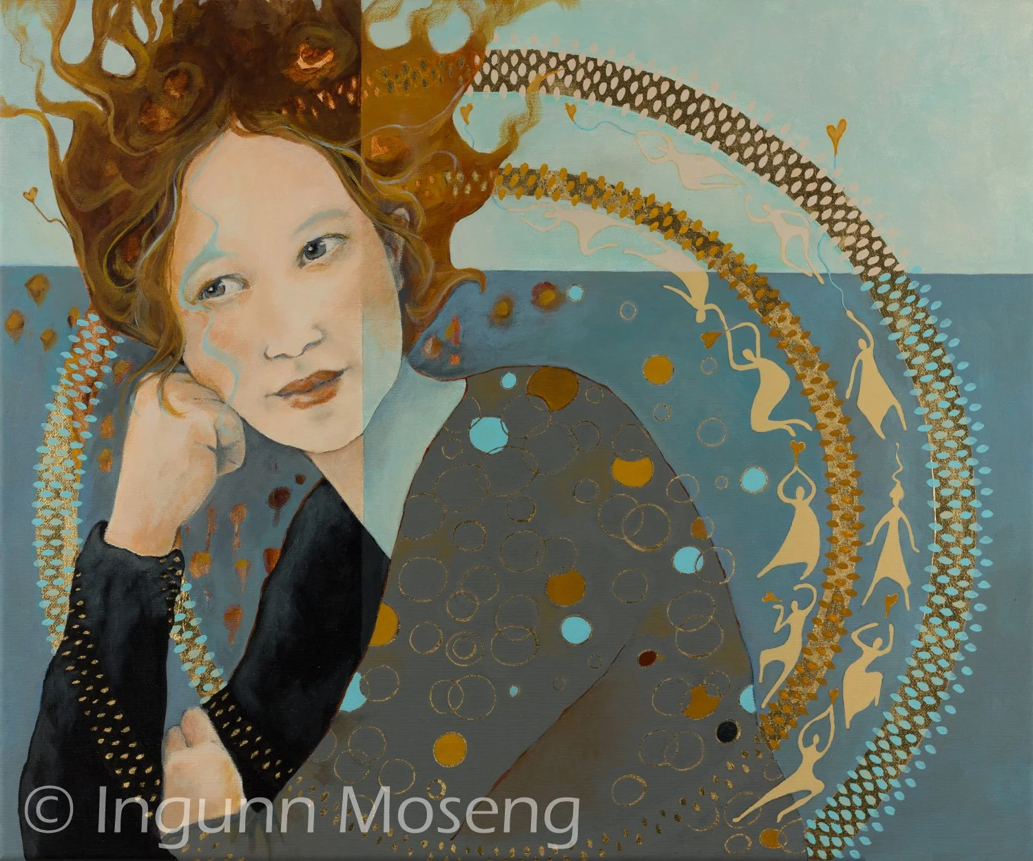 "Forunderlig øyeblikk" / "Wonderous moment" , 70x90 acrylic and gold metal leaf on canvas. Original work sold to private collector in Germany. Prints available for purchase.